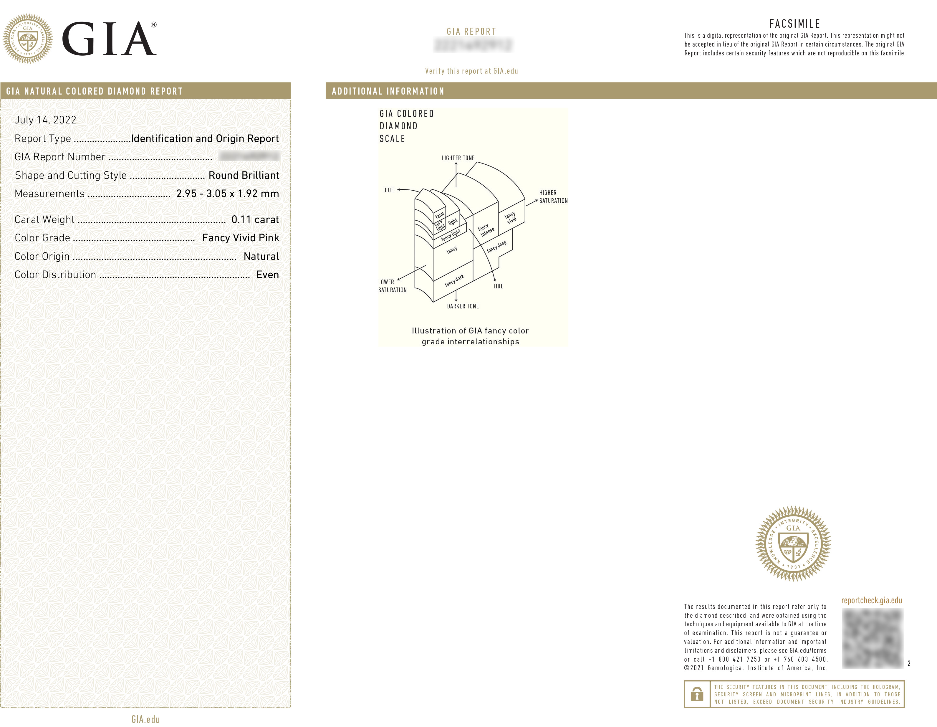 | Lab Color | Fancy Vivid Pink